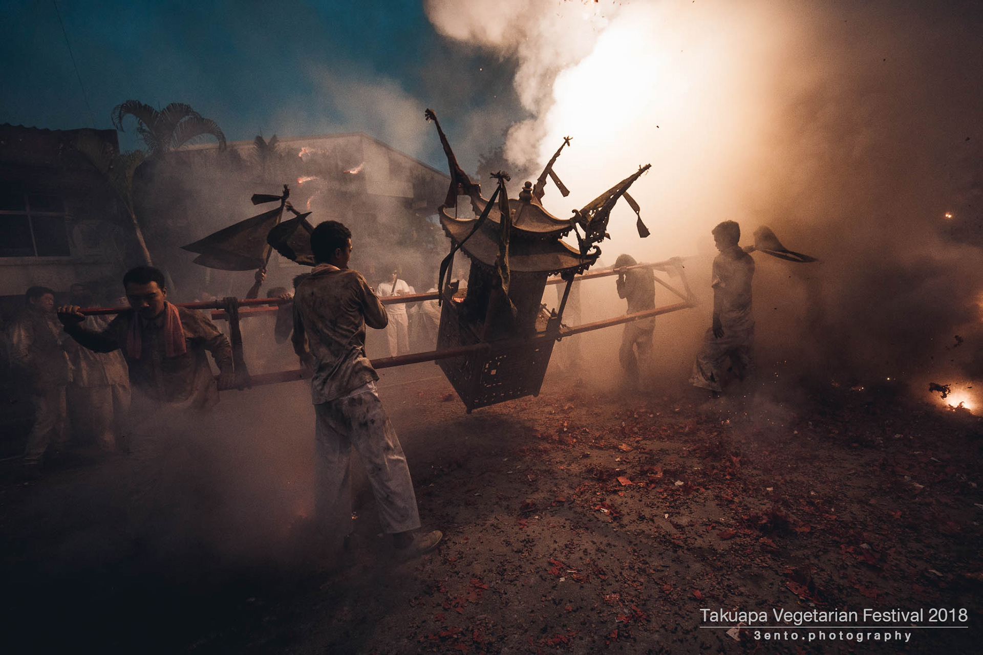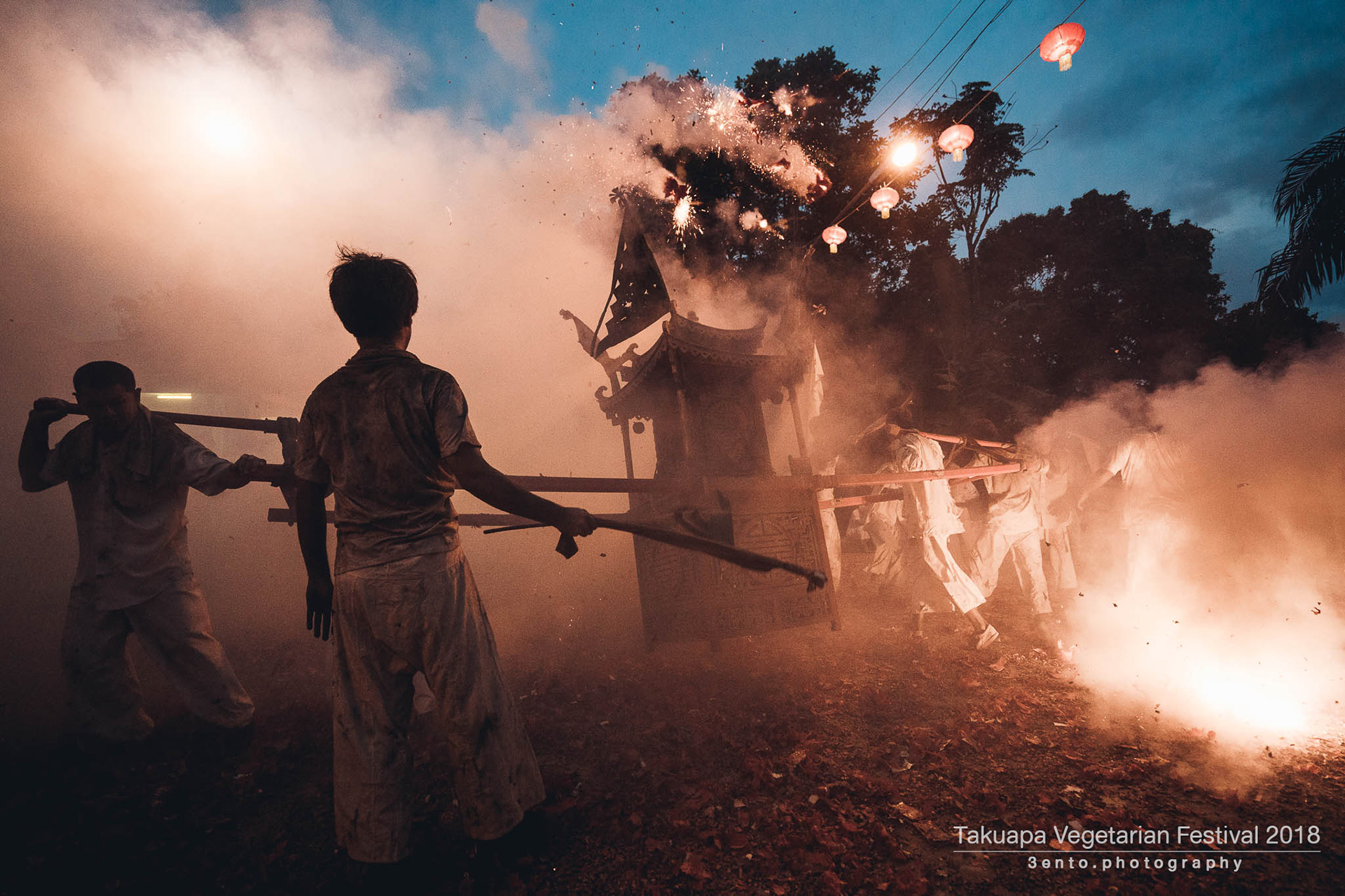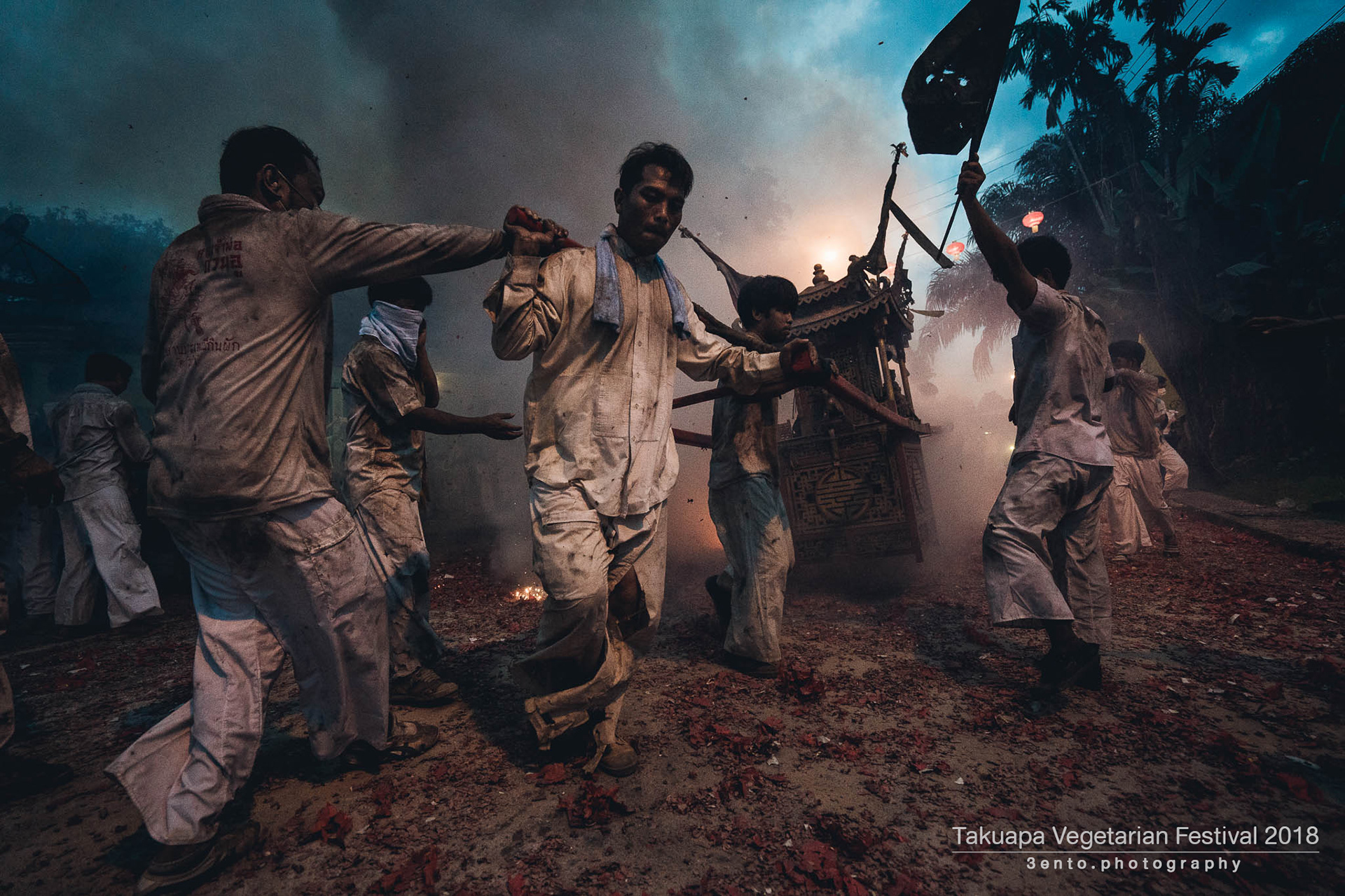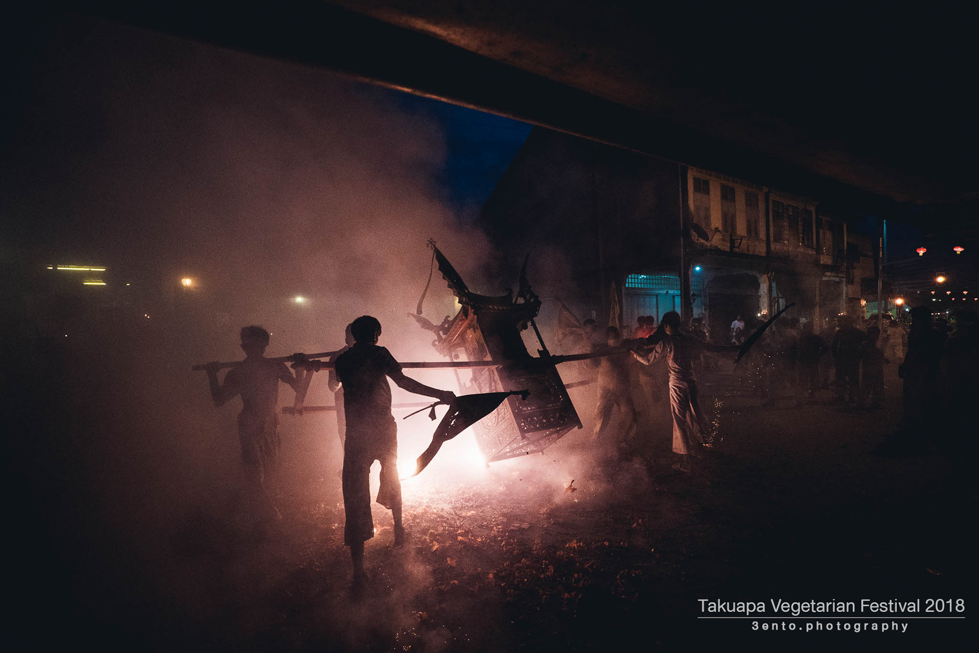 ภาพบรรยากาศขบวนแห่พระ ตลาดเก่า ตะกั่วป่า จังหวัดพังงา ในประเพณีถือศีลกินผัก ประจำปี 2561 ที่มีความเป็นเอกลักษณ์ประจำตัว จะเริ่มทำพิธีตั้งแต่เที่ยง และเริ่มแห่รอบเมืองตั้งแต่บ่าย จนถึงค่ำ เป็นประเพณีที่มีความขลังสืบทอดกันมาแต่โบราณ